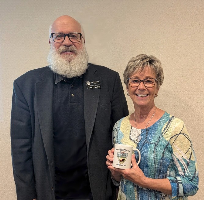 January 22, 2024 Luncheon Speaker - Our guest was John Bradley, a member of the 2019-2020 San Bernardino County Civil Grand Jury, who discussed their California Grand Jury Association Best Grand Jury Report awarded in October 2023. The Grand Jury provided evidence of deceptive practices and a lack of transparency on the part of the Upland City management. The Report also noted additional instances of Upland's failure to follow its own documented processes and procedures. John holds the framed certificate given by the California Grand Jury Association and a San Bernardino Grand Jury coffee cup given by 1st Vice President Ellen Miller.