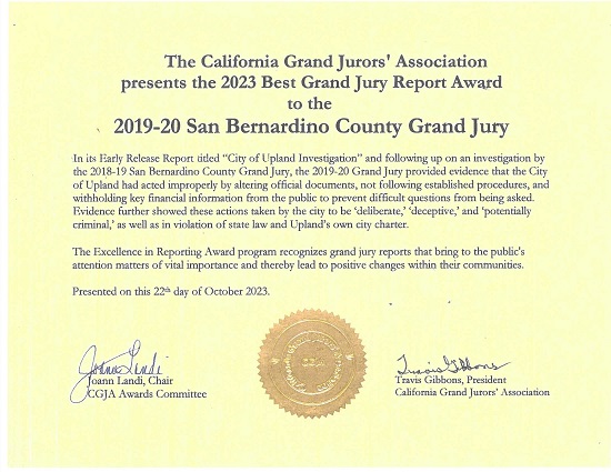 The San Bernardino County Grand Jurors' Association is a valuable resource which provides the following services: