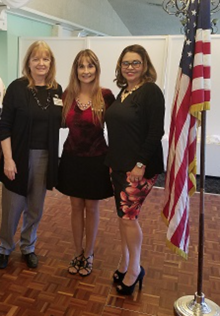 January 27, 2020 Luncheon Speakers - Ms. Gretchen Anderson (left) and Ms. Isabel Hunt (far right) volunteers with Embrace Me! Adoption and Foster Care. Ms. Ellen Miller, President of the San Bernardino Past Grand Jurors Association (middle). Photo courtesy Darrell Freeland.