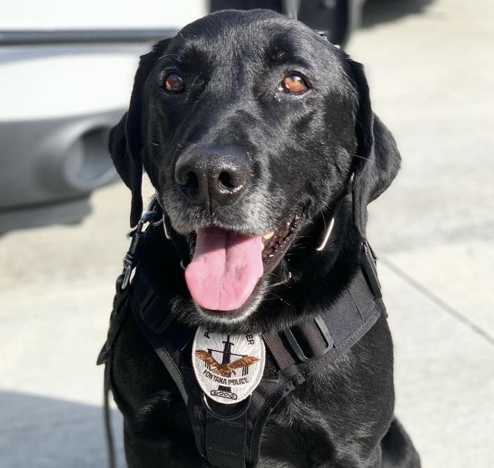 June 6, 2022 Luncheon Speakers - Our guests from the Fontana Police Department were those members from the Internet Crime Division. "Special" guest was Officer K9 "Goose," a black Labrador Retriever and his handler Officer Mark Wyrick who were instrumental in finding a missing person who was in distress back in September 2021. After "Goose" tracked a scent for more than two miles through yards and open fields, officers located the autistic18-year-old woman in the back seat of a parked vehicle. The woman had entered the unlocked vehicle to get out of the heat and was suffering from heat exhaustion when found. It was unknown how long she had been sitting inside the vehicle and the outcome could of been drastically different if not found. She was treated by the San Bernardino County Fire/medics and safely returned to her family. Photo Fontana Herald News.